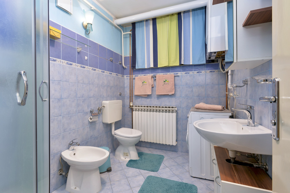 Oprema: plinsko grijanje, klimatizacija, opremljena kuhinja za dulji boravak, hladnjak sa ledenicom, mikrovalna pećnica, tuš kabina, bide, perilica rublja, WI-FI (uključen u cijenu), TV SAT, sef.